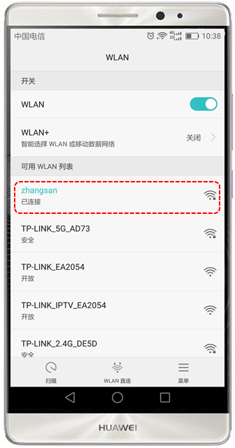 首先,我们介绍安卓手机连接TP-LINK无线(Wi-Fi)信号的方法,重点是介绍连接信号过程中需要注意的事项。请您务必确认路由器发出的无线信号名称和无线密码,本文使用无线信号名称zhangsan(密码1a2b3c4d)举例。请按照下文操作:
