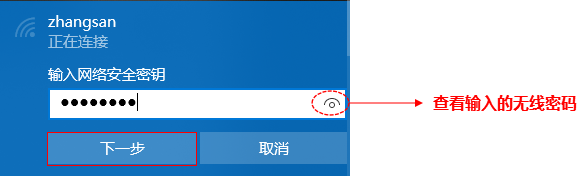 输入无线密码,点击“下一步”,如下图: