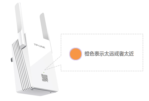 扩展器距离路由器过近或过远时,指示灯为橙色,此时可以适当调整扩展器位置以达到理想状态。从指示灯颜色可以判断扩展器的位置是否合适,如下图:
