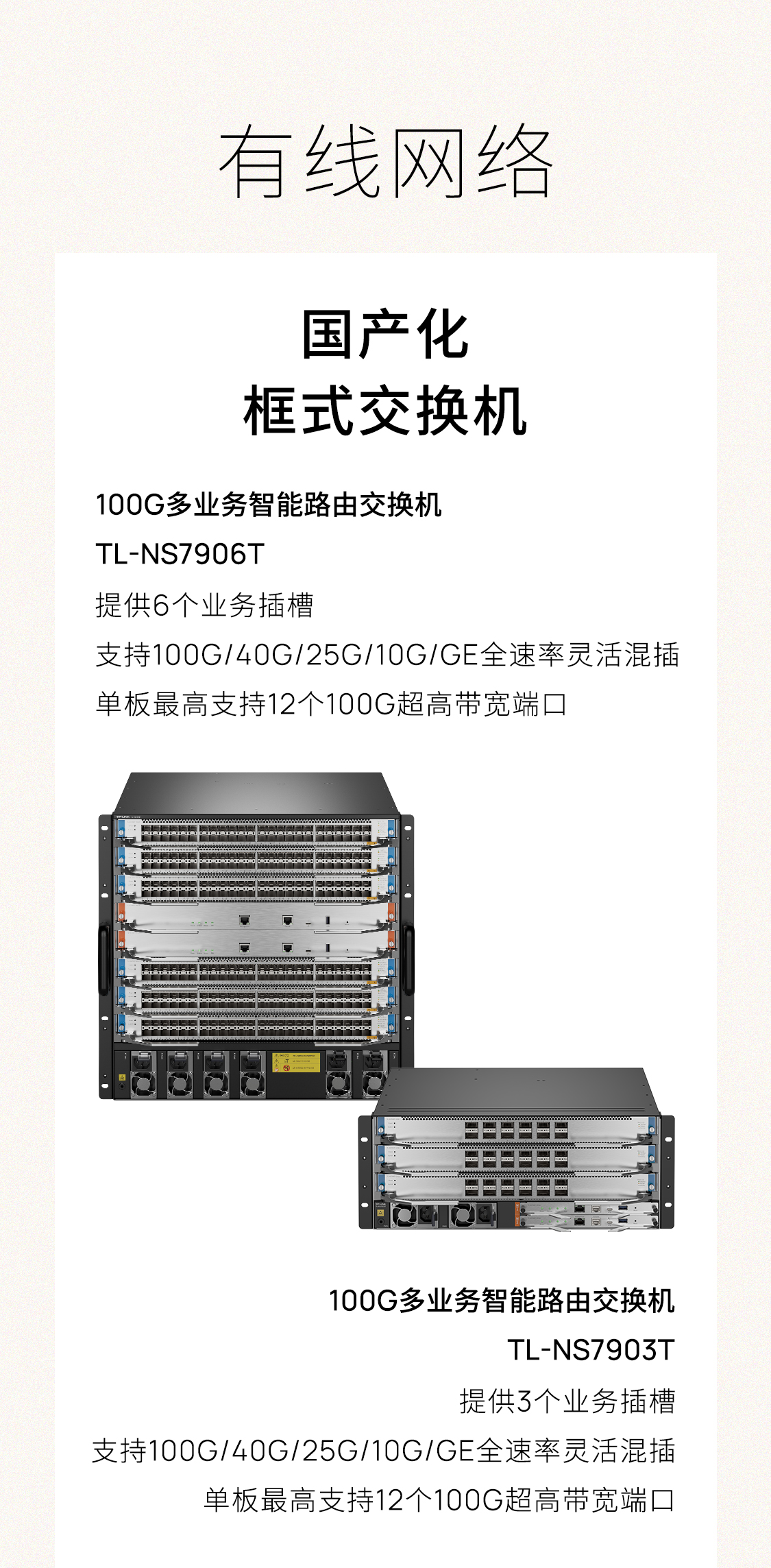 支持100G/40G/25G/10G/GE全速率灵活混插