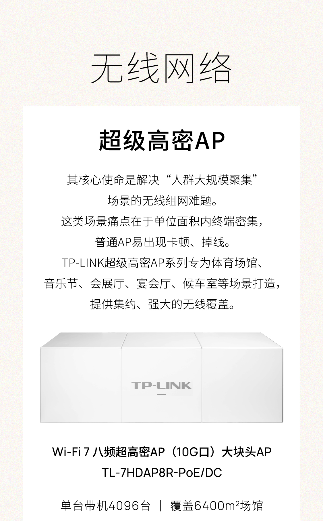 TP-LINK超级高密AP系列专为体育场馆、音乐节、会展厅、宴会厅、