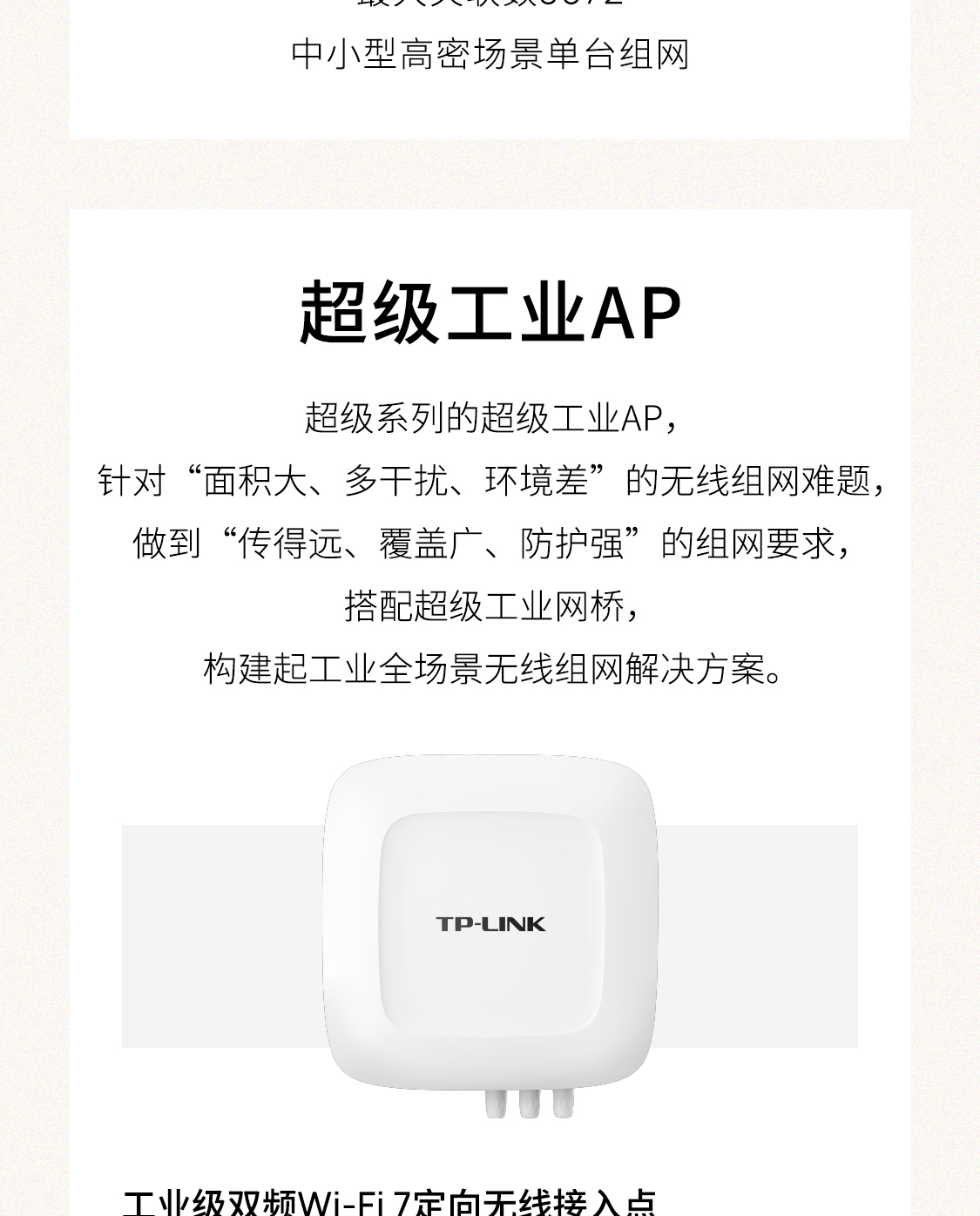 超级系列的超级工业AP,针对“面积大、多干扰、环境差”的无线组网难题,