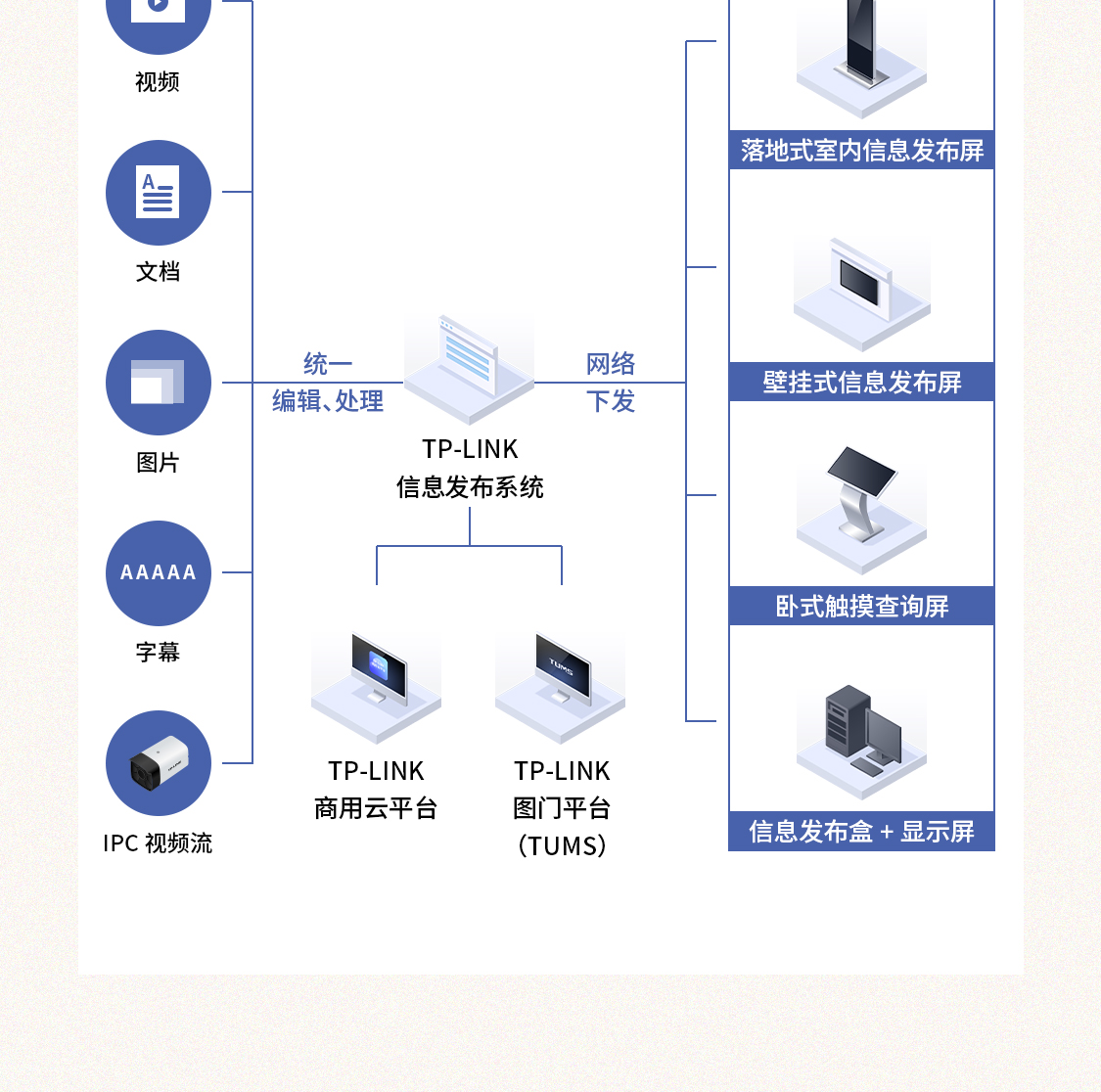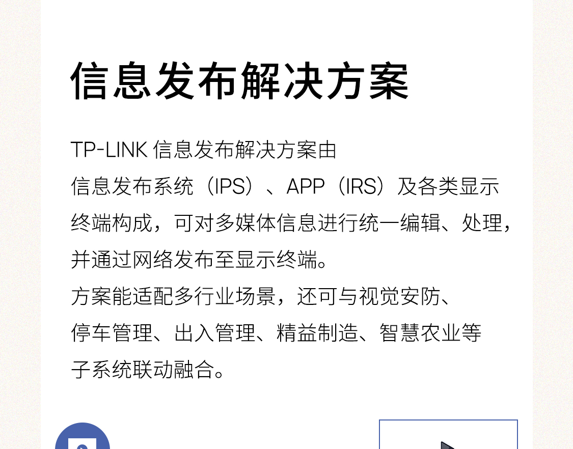 TP-LINK 信息发布解决方案由信息发布系统(IPS)、APP(IRS)