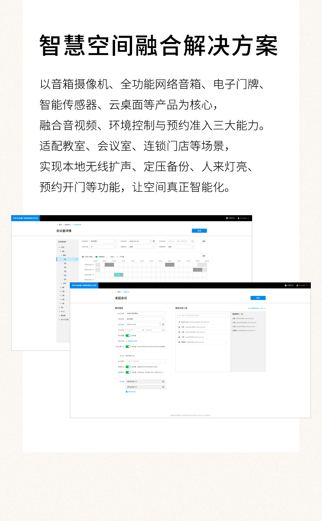 环境控制与预约准入三大能力。适配教室、会议室、